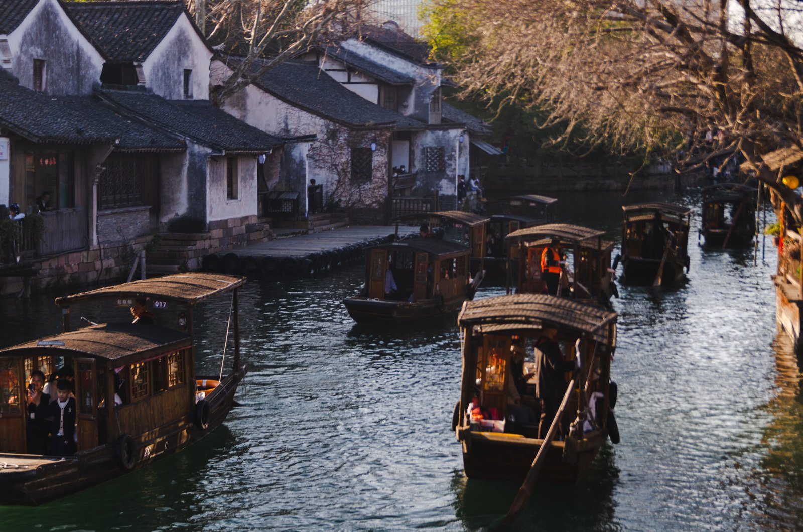 Wuzhen, China. Carried along by the crowd, I shot this picture in one shot, no review. It amazed me how many people come back to these weathered eaves by boat and by camera, rediscovering how old architecture can still hold a new day.